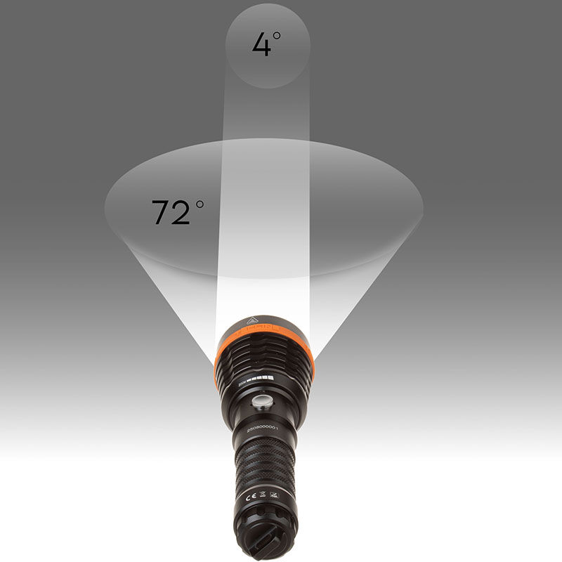 Latarka TecLine ZOOM o maksymalnej mocy świecenia 1500 Lm i z płynnie regulowanym kątem świecenia od 4 stopni do 72 stopni.