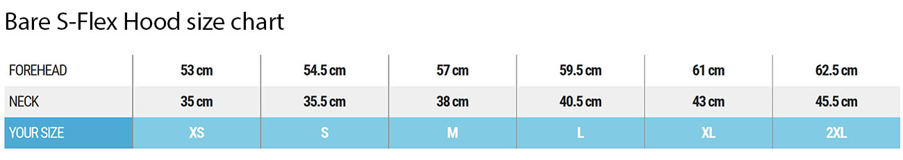 Sprawdź tabelę rozmiarów Mares S-Flex Hood