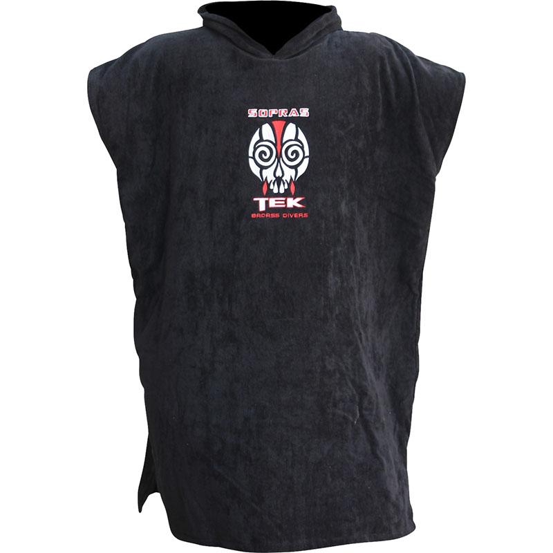 SoprasTEK Poncho Cotton to bawełniany ręcznik z kapturem dla osoby dorosłej, które zapewni ciepło, wygodę i prywatność po morsowaniu, nurkowaniu, surfingu czy plażowaniu.